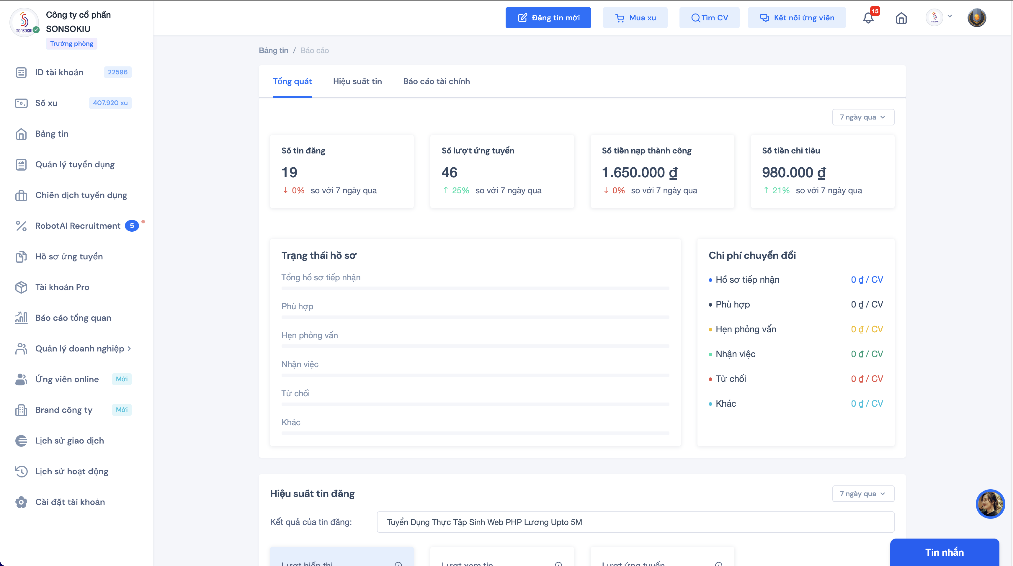 Giúp nhà tuyển dụng biết được chính xác số lượng CV ứng viên qua từng vòng từ vòng nhận CV đến đi làm. Đồng thời cũng đo lường chi phí tuyển dụng theo giá trị thực tế mà doanh nghiệp đã chi trả để tìm kiếm ứng viên.