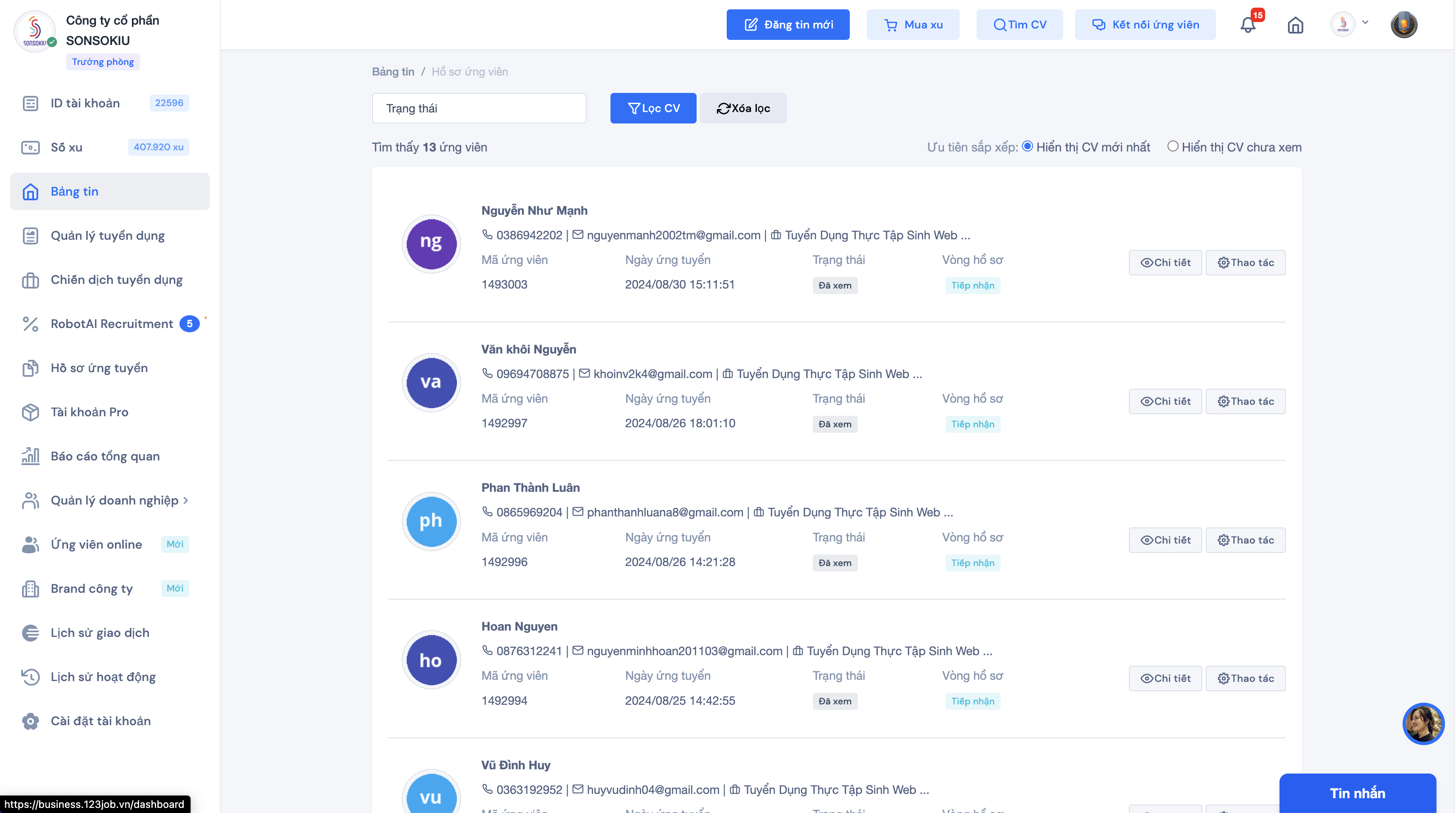 "Tính năng xem ứng viên online" cho phép nhà tuyển dụng xem và đánh giá các ứng viên trực tuyến một cách nhanh chóng và thuận tiện...